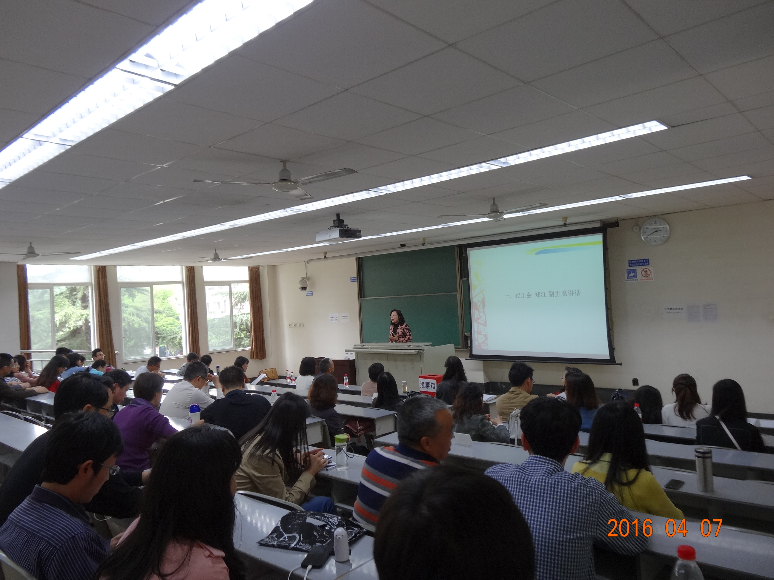 第一阶段工会委员会换届选举会议由院工会主席胡久梅主持,校工会副主席郑江出席了换届选举大会。校工会副主席郑江首先讲话,她对微密圈