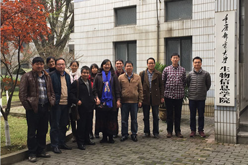 药学系老师一行七人,赴重庆邮电大学生物信息学院进行调研座谈。重庆邮电大学生物信息学院李章勇院长、舒坤贤副院长、刘毅教授和王光利主任等五位老师参加了调研座谈,双方对学科优化、资源共享和今后进一步交流合作进行了详细的研讨和商谈。