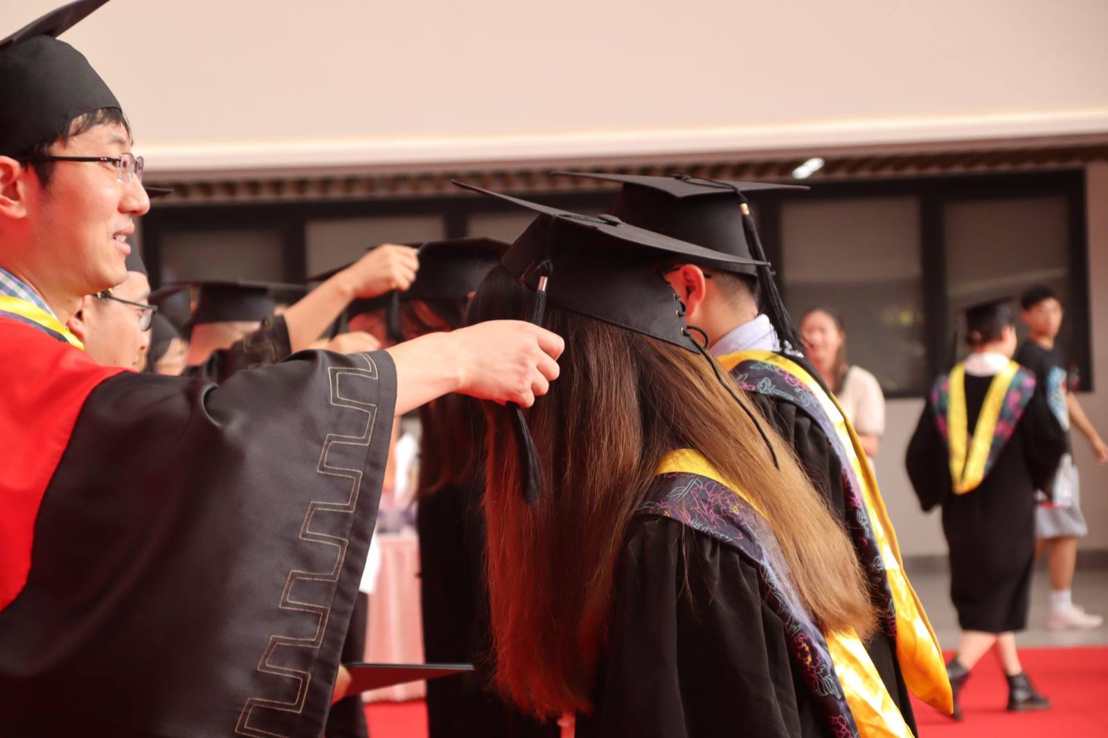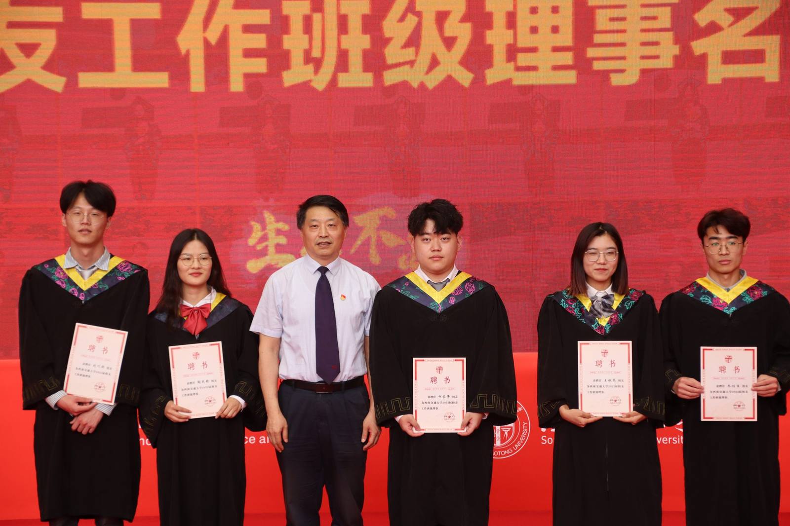 2022届全体毕业生”,全场响起热烈的欢呼声,老师和同学们纷纷为毕业生送上祝福,现场掌声雷动。