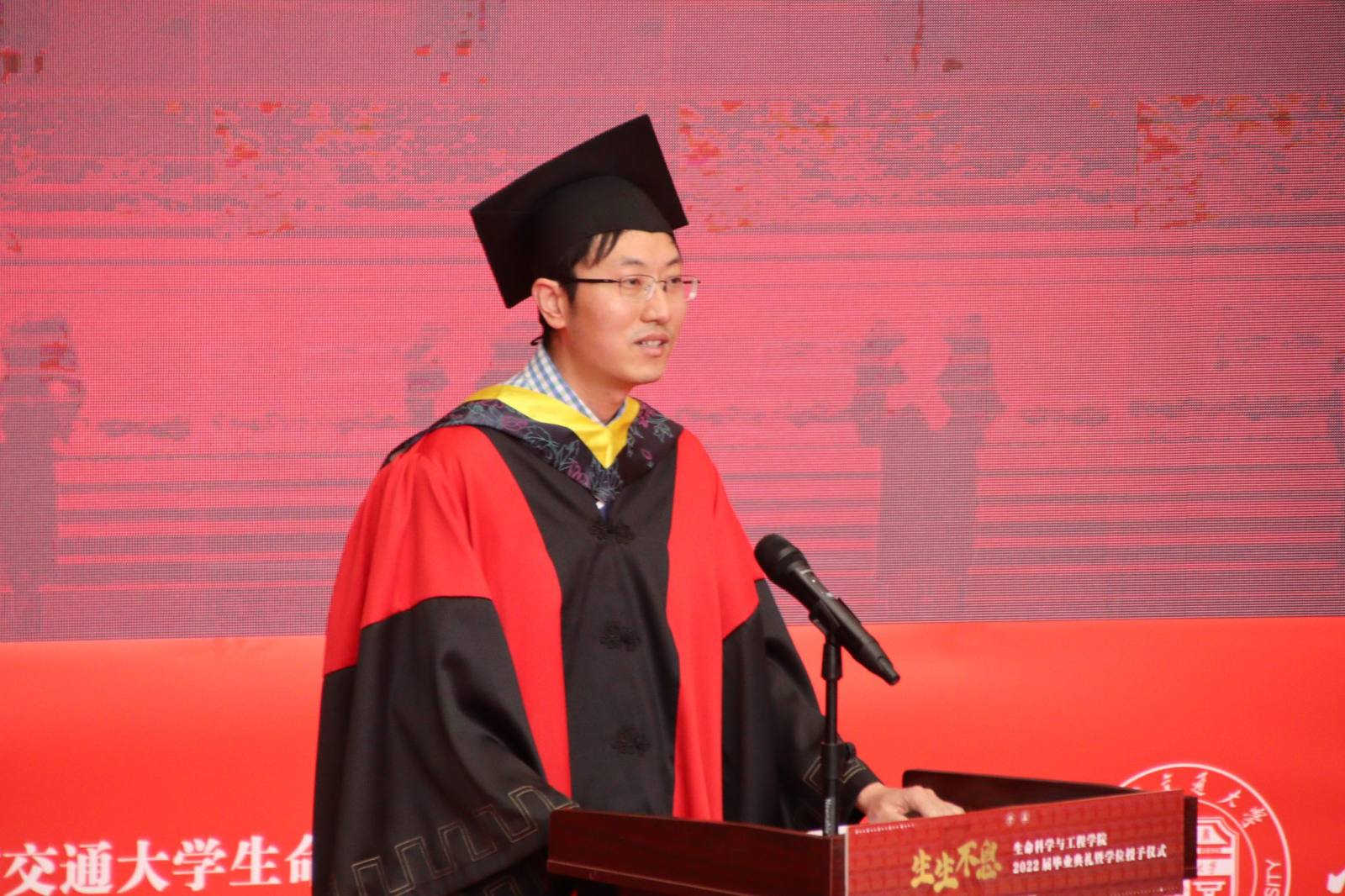 典礼在庄严的国歌中拉开帷幕。周先礼代表学院向全体毕业生送上衷心祝贺,以“理想还在吗?”、“还要依赖他人吗?”、“本领够硬了吗?”三个发人深思的提问引发毕业生们的思考。在临别之际,他语重心长地向毕业生们提出三点要求:要坚定信念、把人生理想融入到党和人民的期待中,要热爱祖国、心系母校,要沉淀积累、锤炼本领。“时代与你们是双向奔赴的!”他指出,同学们要把握时代机遇,在实现中华民族伟大复兴的征程中,做不负韶华、堪当重任的交大人。