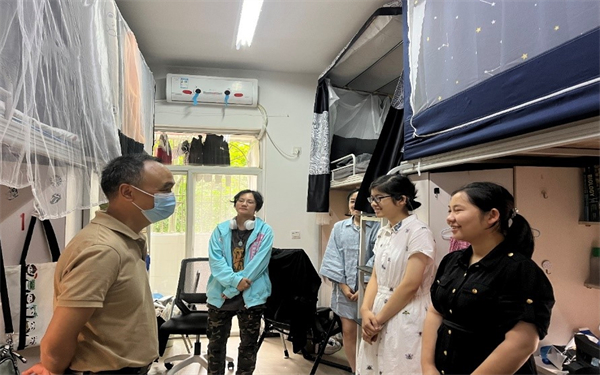 学院充分发挥“教师深入,党员冲锋”的双引领作用,关注“身”“心”健康两个层面,学院党委书记葛永明、院长周先礼带头走进学生寝室关心慰问,了解学生们的学习和生活情况,认真聆听同学们的心声,叮嘱同学们注意疫情防护,严格遵守学校各项防疫要求,同时要加强体育锻炼,希望同学们要保持良好的生活习惯,以乐观的态度和饱满的精神投入到学习中。学生工作组的辅导员老师们常态化深入学生,扎实做好疫情防控工作、暖心做好后勤服务,坚持把学生的生命安全和身心健康放在第一位。