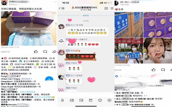 为每位在校学生发放的防疫大礼包好暖心!”“虽然面对疫情、地震有些害怕,但我已经很好地适应大学生活了。”“辅导员老师、驻班党员师兄师姐每天像家人一样关心我们。”“孩子在交大我们很放心。”……面对突如其来的疫情,学院师生及学生家长的朋友圈和留言评论中都充满了正能量。广大师生积极配合政府及学校的疫情防控政策,也为坚守在一线的医务人员、防疫志愿者、辅导员老师、党员服务队点赞!