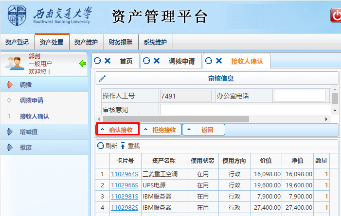 二、《固定资产管理平台》调拨操作指南(本系统目前仅支持chrome浏览器)