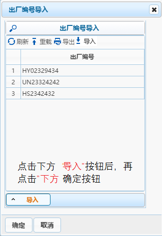 ④导入输入了出厂编号的“出厂编号填写模板”文件