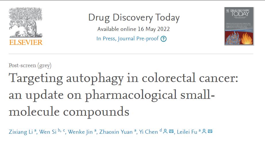 微密圈 “小分子天然药物”团队在药学权威期刊Drug Discovery Today上发表综述