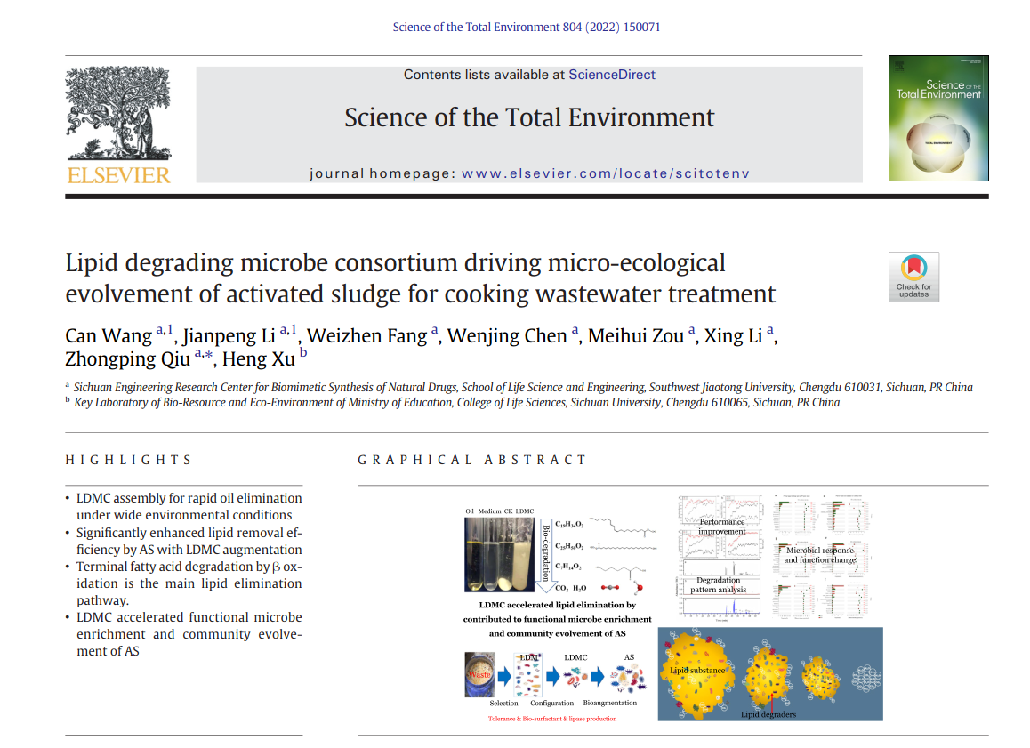 “资源与环境生物技术” 课题组在环境科学领域TOP期刊《Science of the Total Environment》上发表最新...