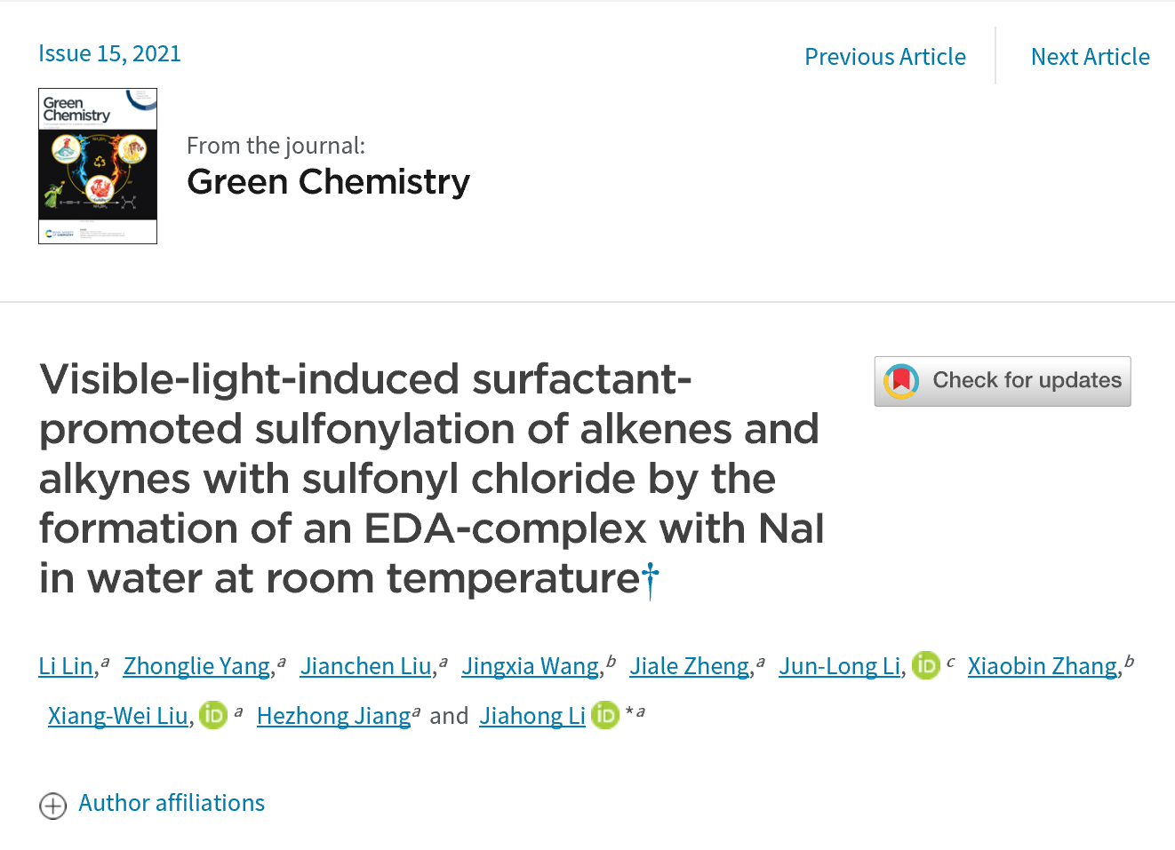 化学顶级期刊Green Chemistry发表微密圈 李加洪博士团队最新研究成果