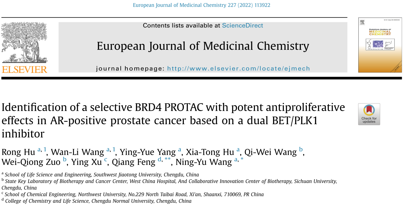 微密圈 王宁宇课题组在《European Journal of Medicinal Chemistry》上发表高水平论文