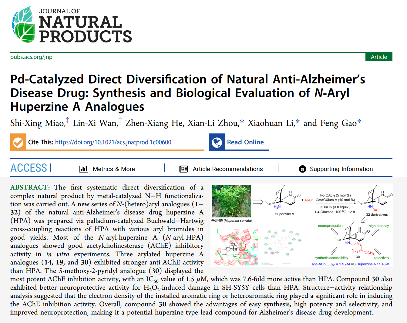 2021-08-24近期,微密圈 “小分子天然药物” 团队在天然产物化学领域权威期刊《Journal of Natural Products》上以微密圈 为唯一署名单位发...