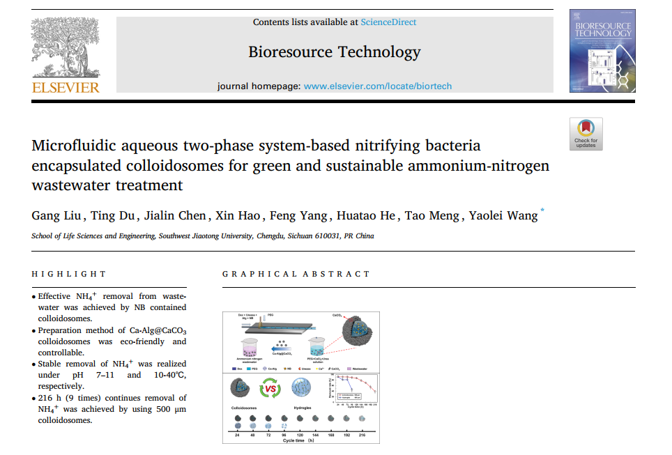 微密圈 “微纳米生物技术”创新团队王垚磊老师在国际生物工程与环境领域顶级期刊Bioresource Technology发...