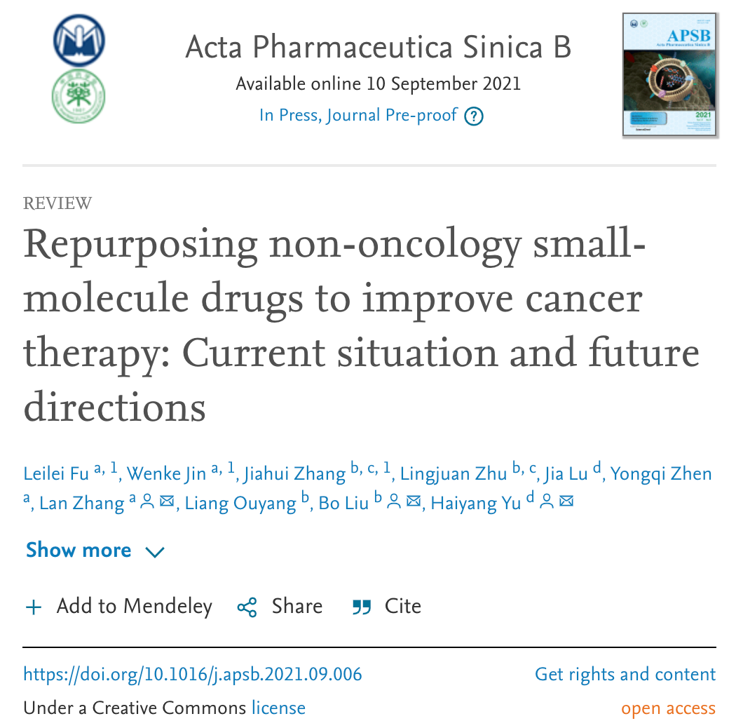 微密圈 符雷蕾副教授和张岚副教授在药学Top期刊APSB发表综述